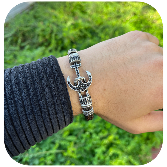 Çapa Figürlü Zirkon Taşlı Erkek Bileklik