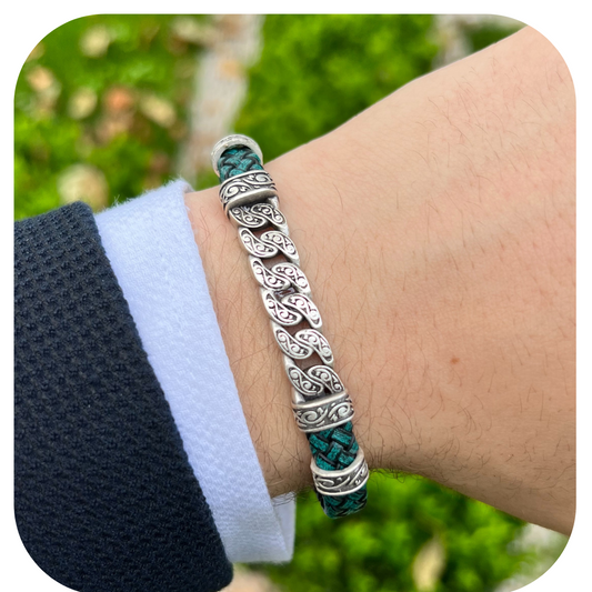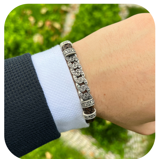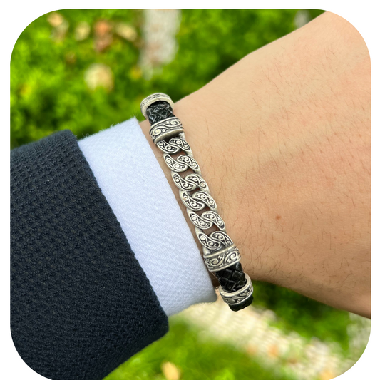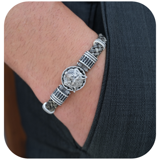 Poseidon Figürlü Zirkon Taşlı Hakiki Deri Erkek Bileklik