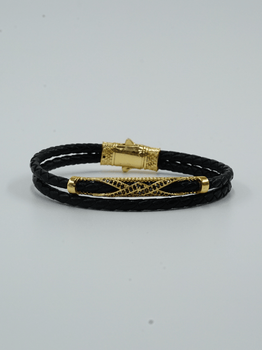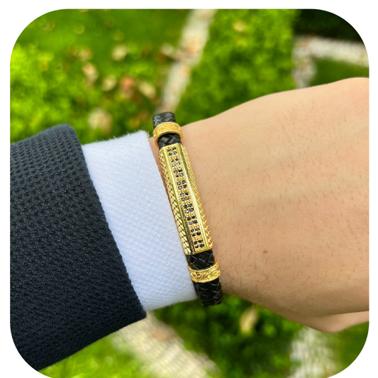 Zirkon Taş İşlemeli Siyah Deri Gold Renk Bileklik