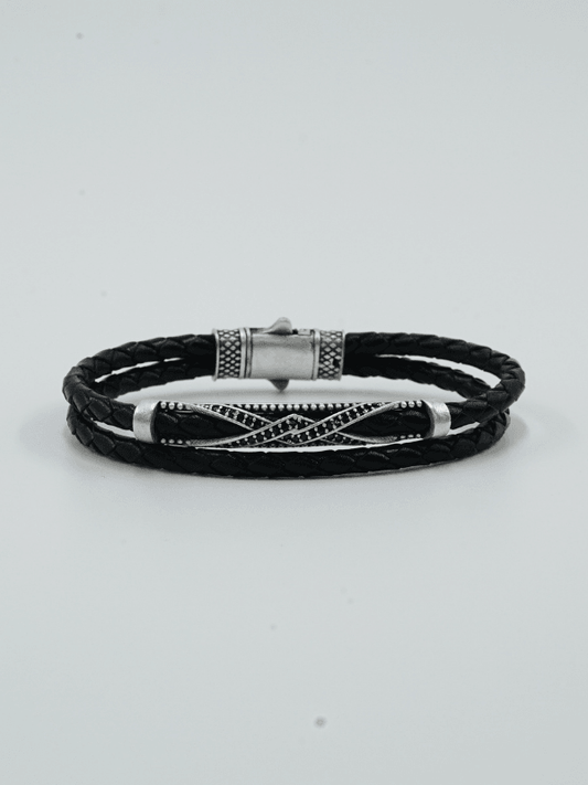 Çoklu Zirkon Taşlı Hakiki Deri Erkek Bileklik