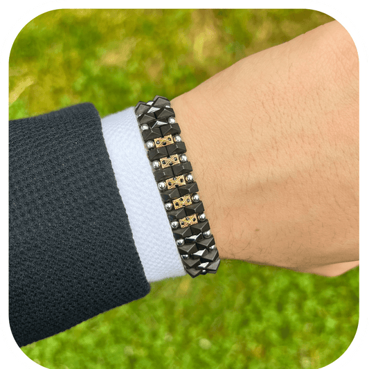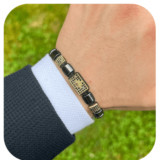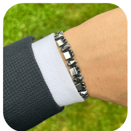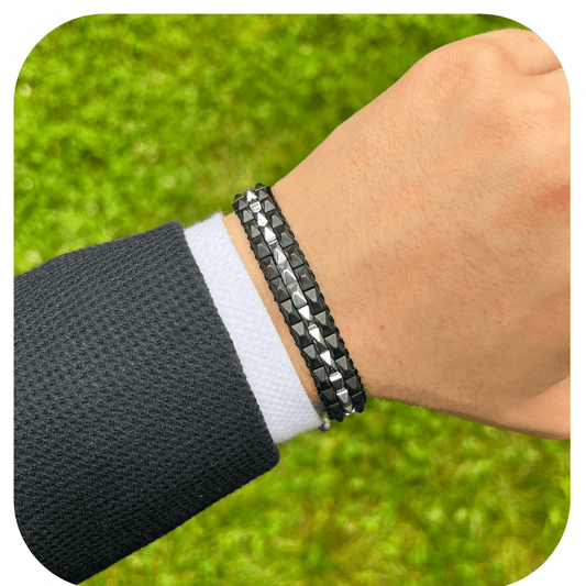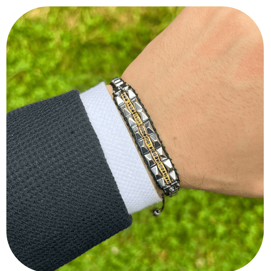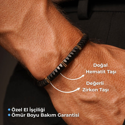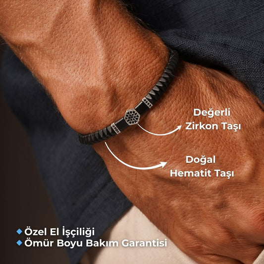 Hematit & Zirkon Taşlı Ayarlanabilir Erkek Bileklik – HexForce