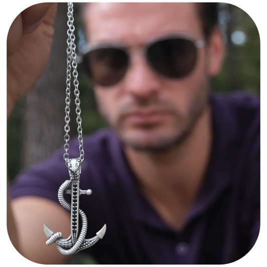 Gemi Çapası Model Zirkon Taşlı Paslanmaz Çelik Kolye