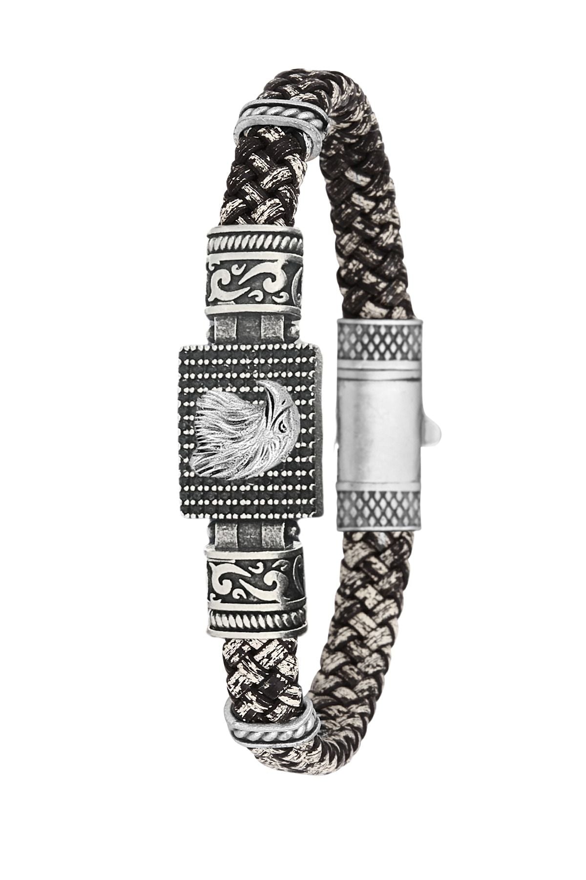 Kartal Figürlü Zirkon Taşlı Hakiki Deri Erkek Bileklik