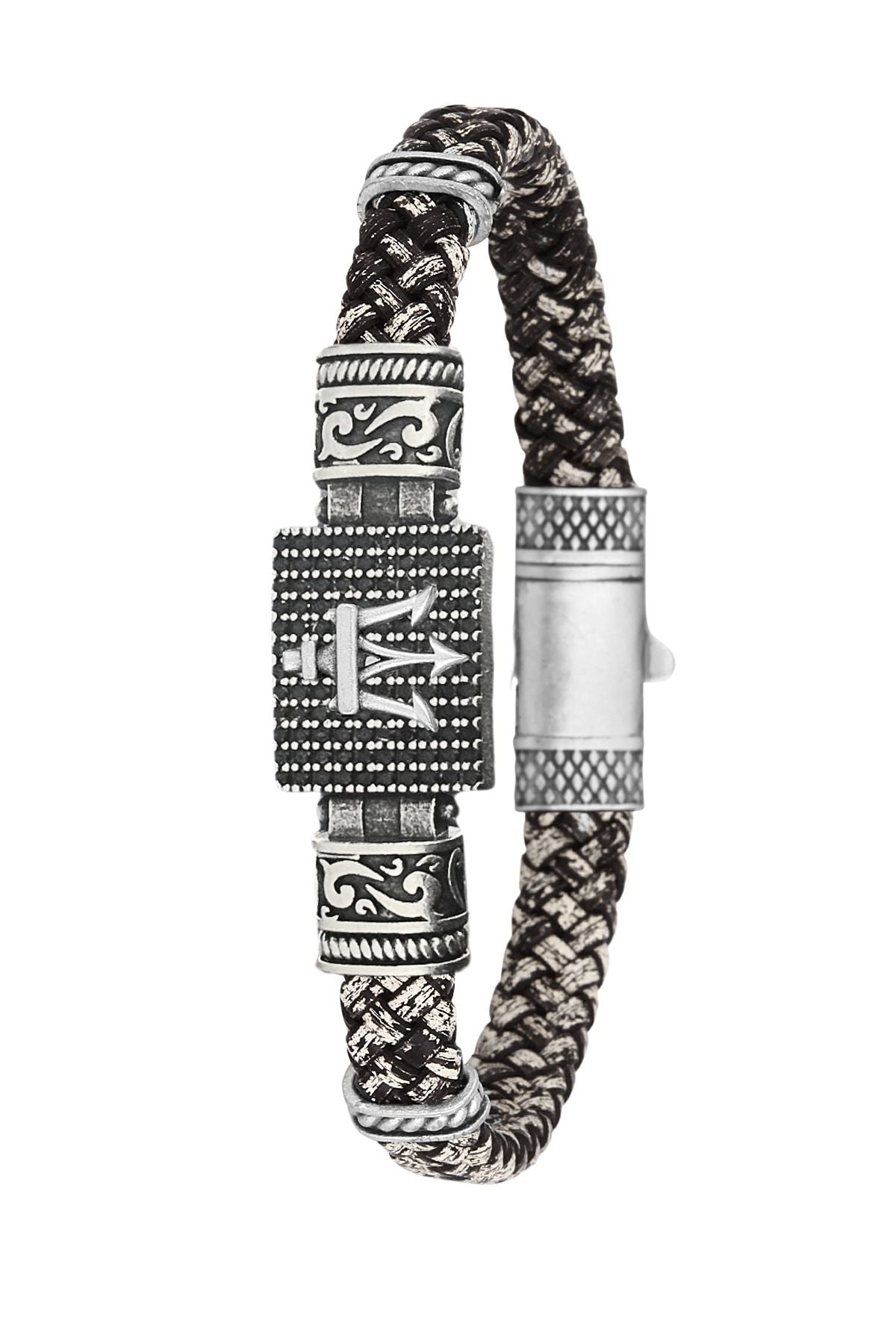 Poseidon Figürlü Zirkon Taşlı Hakiki Deri Erkek Bileklik