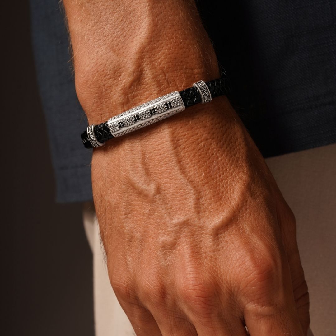 Özenle yerleştirilmiş dörtlü değerli zirkon taşı, ışığı en iyi şekilde yakalayarak stiline sofistike bir dokunuş katıyor. Güçlü duruşu ve şık tasarımıyla dikkat çeken bu bileklik, hem günlük kombinlerinde hem de özel anlarında tarzını tamamlayacak.